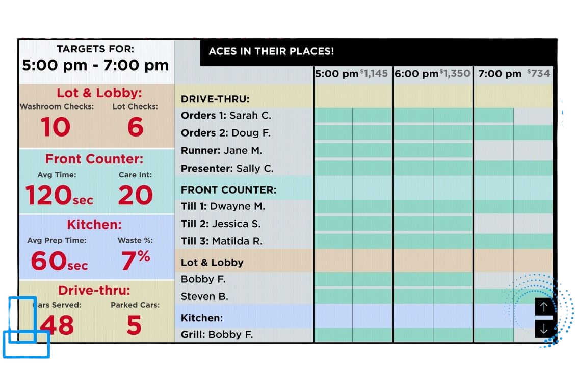Eliminate paper schedules by displaying real-time employee work schedules on digital signage. Make it easy for staff to view their shifts, breaks, and days off.