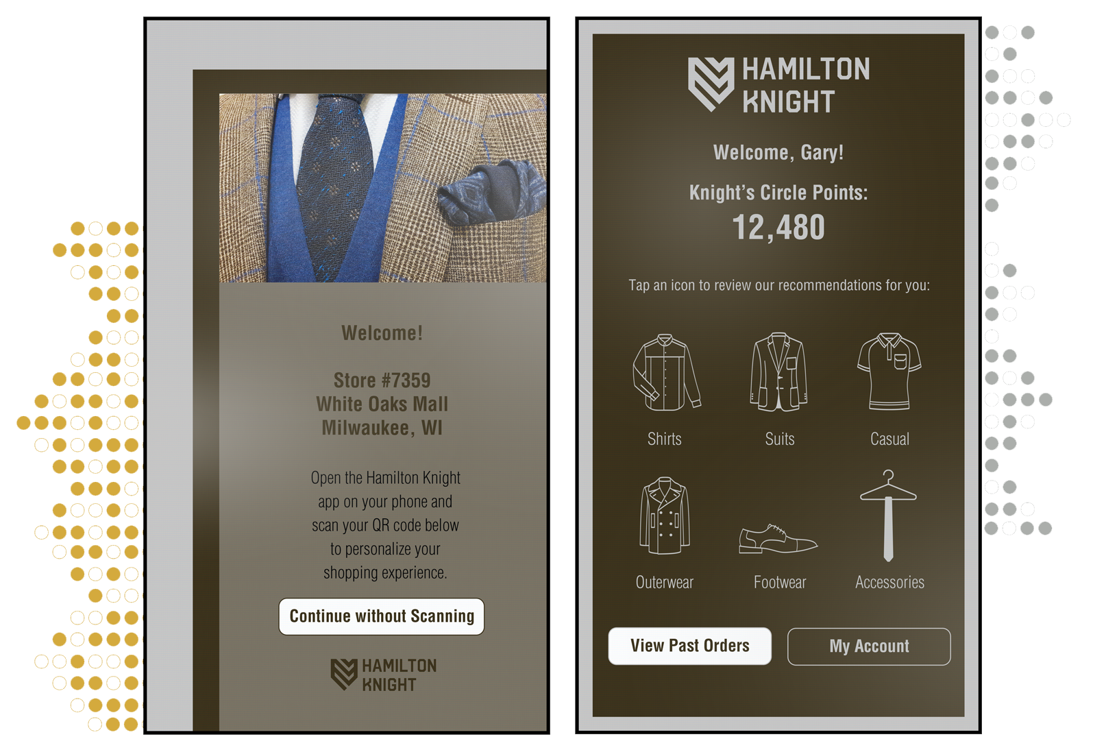 Enable customers to self-serve with interactive touch screens. Strategically located touch screens enable customers to search for sizes, colors, and product information without finding an employee.