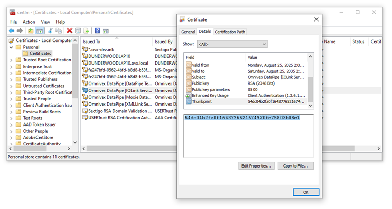 This certificate can be used in Omnivex applications such as Moxie Data Server, DataPipe Client, XMLLink, SQLLink, and IOLink.