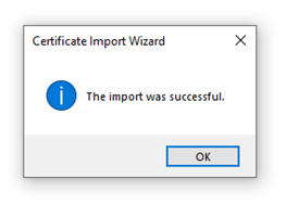 You have successfully imported a certificate that can be used to contact the DataPipe 7 Server.