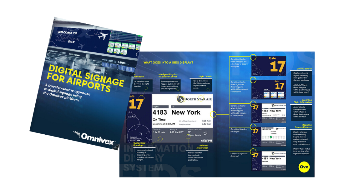 Whether travelling for business or leisure, most travellers want the experience to be stress-free, easy, and enjoyable. Effective visual communications go a long way to ensure that every traveller has a positive experience. Omnivex digital signage software can help manage every aspect of your airport, bus terminal, or train station. Provide travellers with clear wayfinding, simplified scheduling, reduced wait times, health & safety info, advertising, information updates, and multilingual instruction on screens inside and outside your facility.