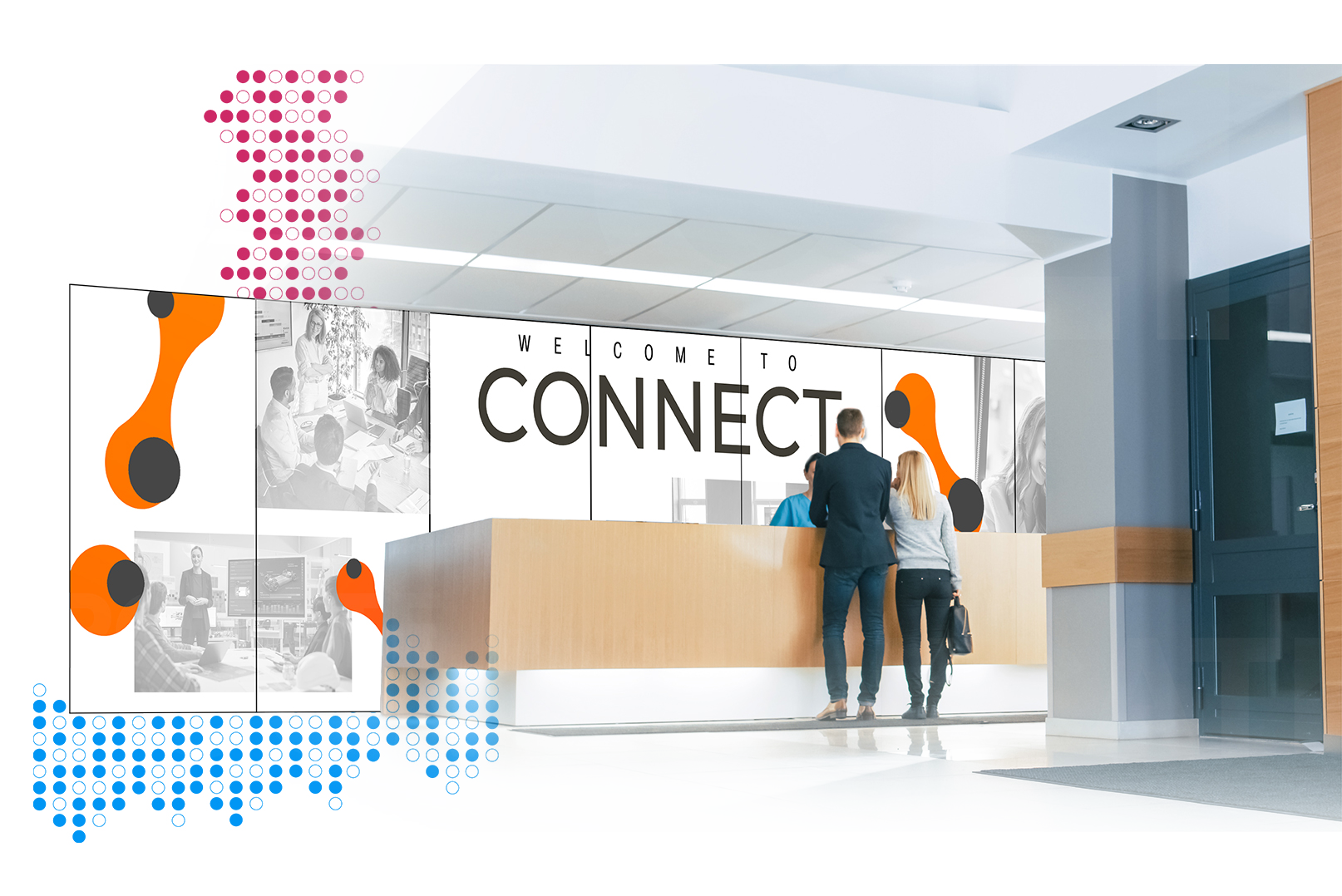 Create a "WOW" as visitors and employees walk through your lobby with a video wall. Whether small or large, a video wall provides a unique opportunity to create a lasting first impression of your organization. Incorporate 4K video and imagery to tell your brand story and engage viewers. Consider integrating interactive elements through the use of touch screens or mobile phones.