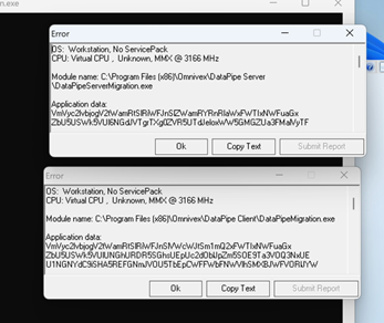 Once emulation is configured, the installer will run and install normally.  Without applying the following settings, DataSuite applications will error with the following reports: